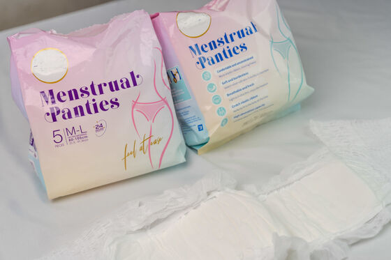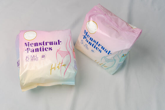 These panties are also excellent for various scenarios beyond just overnight use. They can be worn during long travels, extended work shifts, or any situation where changing menstrual products frequently is inconvenient. The packaging details include 5 pads per bag and 24 bags per carton, ideal for bulk purchase with a minimum order quantity of 100,000 units. Pricing and delivery times are subject to specific orders, and interested customers are encouraged to contact the staff for samples and further information.